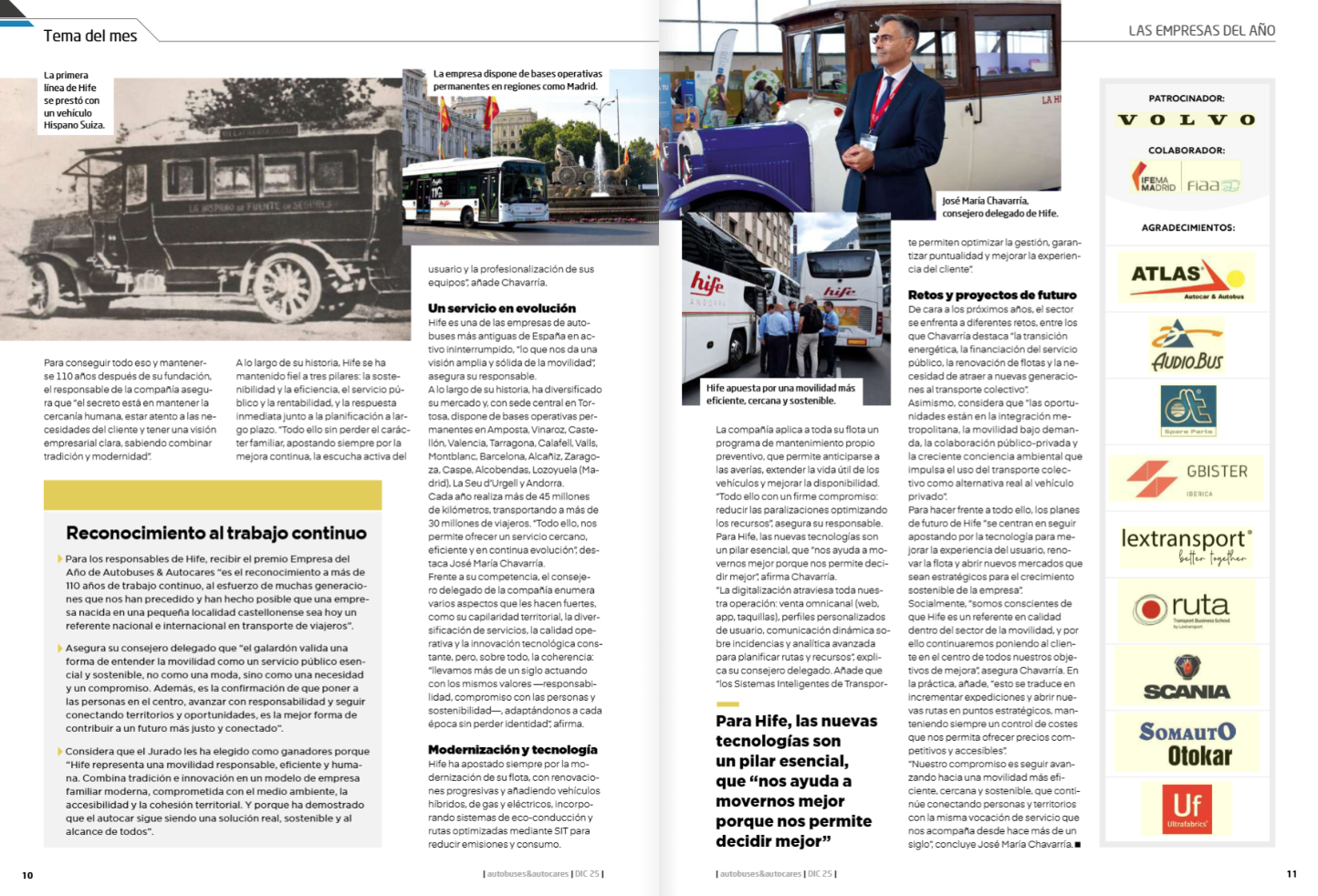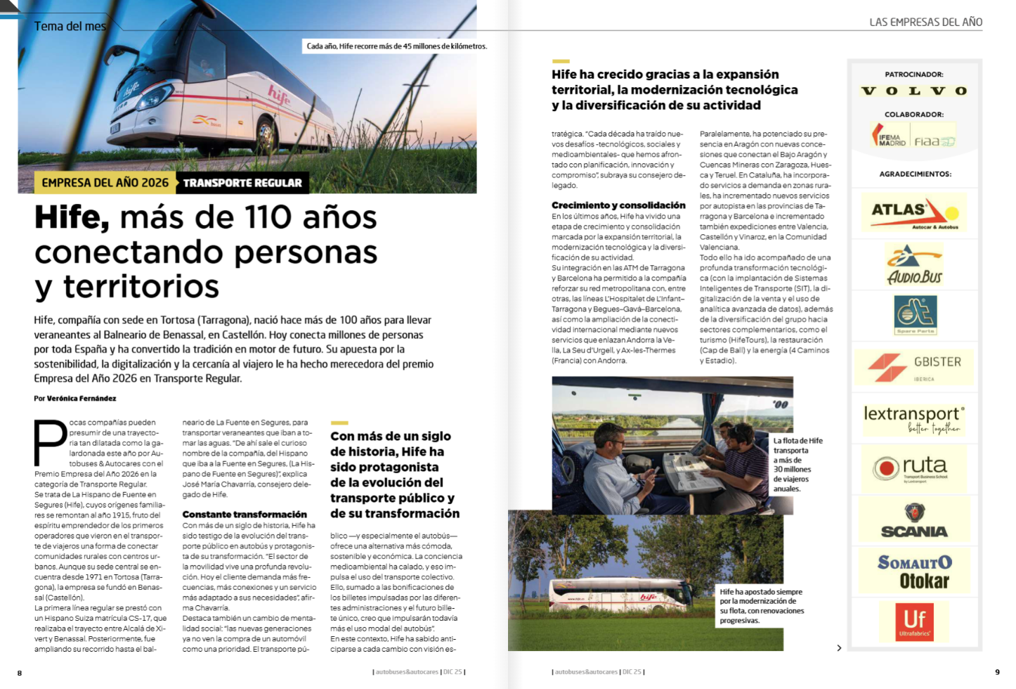 El jurado valoró especialmente la trayectoria de HIFE en el transporte regular, su capacidad de adaptación a los nuevos retos de la movilidad y su apuesta por la innovación y la sostenibilidad. Un reconocimiento que llega en un momento de consolidación para la compañía, que cuenta con más de 110 años de historia y una amplia red de servicios que mueve a millones de viajeros al año.
